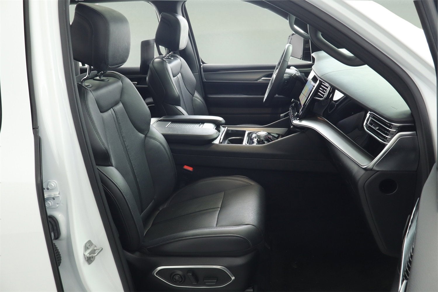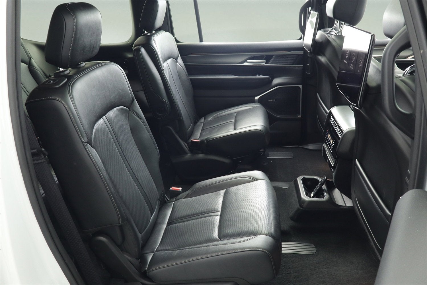 Premium materials throughout the cabin: leather upholstery, ambient lighting, power-adjust front seats, heated second-row seats.