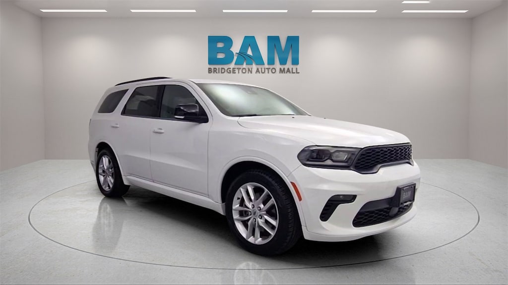 Bridgeton Automall is proud to present you with another True Market Priced Pre-Owned Vehicle. This 2023 Dodge Durango GT Plus is loaded with the following Factory Options: Quick Order Package 2BG GT Plus (1-Year Trial (Registration Required), 10.1 Touchscreen Display, 115V Auxiliary Power Outlet, 180 Amp Alternator, 4G LTE Wi-Fi Hot Spot, 7 & 4 Pin Wiring Harness, Adaptive Cruise Control w/Stop, Apple CarPlay, Auto-Dimming Exterior Driver Mirror, Black Roof Rails, Class IV Receiver Hitch, Connected Travel & Traffic Services, Disassociated Touchscreen Display, Dual Remote USB Port - Charge Only, Exterior Mirrors w/Heating Element, Exterior Mirrors w/Memory, Exterior Mirrors w/Supplemental Signals, Floor Console w/Leather Armrest, Full Speed Forward Collision Warning Plus, Global Telematics Box Module (TBM), Gloss Black Exterior Mirrors, Google Android Auto, GPS Antenna Input, GPS Navigation, HD Radio, Heated Second Row Seats, Heavy-Duty Engine Cooling, Integrated Center Stack Radio, Integrated Roof Rail Crossbars, Integrated Voice Command w/Bluetooth, Leather Trimmed Bucket Seats, Leather Wrapped Door Panels, LED Auxiliary Low Beam & Turn Signal, Power 6x9 Multi-Function Foldaway Mirrors, Power 8-Way Driver Memory 8-Way Passenger Seats, Power Driver/Passenger 4-Way Lumbar Adjust, Power Sunroof, Power Tilt & Telescopic Steering Column, Premium LED Fog Lamps, Radio: Uconnect 5 Nav w/10.1 Display, Radio/Driver Seat/Mirrors Memory, Red Accent Stitching, SiriusXM Guardian - Included Trial (B), SiriusXM w/360L, Trailer Brake Control, USB Host Flip, and Ventilated Front Seats) Quick Order Package 2BG GT Plus (1-Year Trial (Registration Required), 10.1 Touchscreen Display, 115V Auxiliary Power Outlet, 180 Amp Alternator, 4G LTE Wi-Fi Hot Spot, 7 & 4 Pin Wiring Harness, Adaptive Cruise Control w/Stop, Apple CarPlay, Auto-Dimming Exterior Driver Mirror, Black Roof Rails, Class IV Receiver Hitch, Connected Travel & Traffic Services, Disassociated Touchscreen Display, Dual Remote USB Port - Charge Only, Exterior Mirrors w/Heating Element, Exterior Mirrors w/Memory, Exterior Mirrors w/Supplemental Signals, Floor Console w/Leather Armrest, Full Speed Forward Collision Warning Plus, Global Telematics Box Module (TBM), Gloss Black Exterior Mirrors, Google Android Auto, GPS Antenna Input, GPS Navigation, HD Radio, Heated Second Row Seats, Heavy-Duty Engine Cooling, Integrated Center Stack Radio, Integrated Roof Rail Crossbars, Integrated Voice Command w/Bluetooth, Leather Trimmed Bucket Seats, Leather Wrapped Door Panels, LED Auxiliary Low Beam & Turn Signal, Power 6x9 Multi-Function Foldaway Mirrors, Power 8-Way Driver Memory 8-Way Passenger Seats, Power Driver/Passenger 4-Way Lumbar Adjust, Power Sunroof, Power Tilt & Telescopic Steering Column, Premium LED Fog Lamps, Radio: Uconnect 5 Nav w/10.1 Display, Radio/Driver Seat/Mirrors Memory, Red Accent Stitching, SiriusXM Guardian - Included Trial (B), SiriusXM w/360L, Trailer Brake Control, USB Host Flip, and Ventilated Front Seats), 3.27 Rear Axle Ratio, 3rd row seats: split-bench, 4-Wheel Disc Brakes, 6 Speakers, ABS brakes, Air Conditioning, Alloy wheels, AM/FM radio: SiriusXM, Apple CarPlay/Android Auto, Auto-dimming Rear-View mirror, Auto-leveling suspension, Automatic temperature control, Brake assist, Bumpers: body-color, Cloth Bucket Seats w/Shift Insert, Compass, Delay-off headlights, Driver door bin, Driver vanity mirror, Dual front impact airbags, Dual front side impact airbags, Electronic Stability Control, Four wheel independent suspension, Front anti-roll bar, Front Bucket Seats, Front Center Armrest w/Storage, Front dual zone A/C, Front License Plate Bracket, Front reading lights, Fully automatic headlights, Garage door transmitter, Heated door mirrors, Heated front seats, Heated steering wheel, Illuminated entry, Knee airbag, Leather steering wheel, Low tire pressure warning, Manufacturer's Statement of Origin, Occupant sensing a